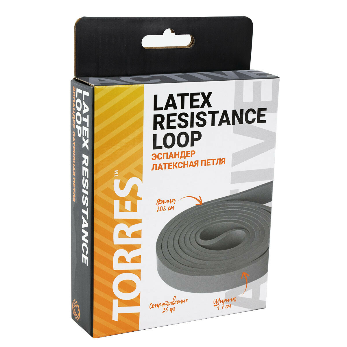 Эспандер TORRES латексная петля, арт. AL0047, длина 208 см, ширина 1.7 см, сопротивление 25, кг, серый