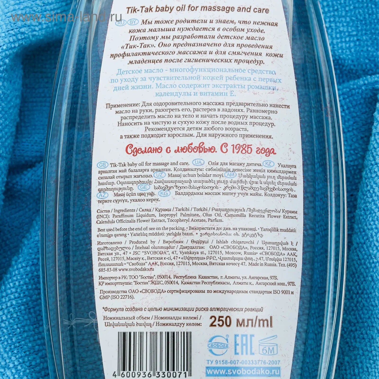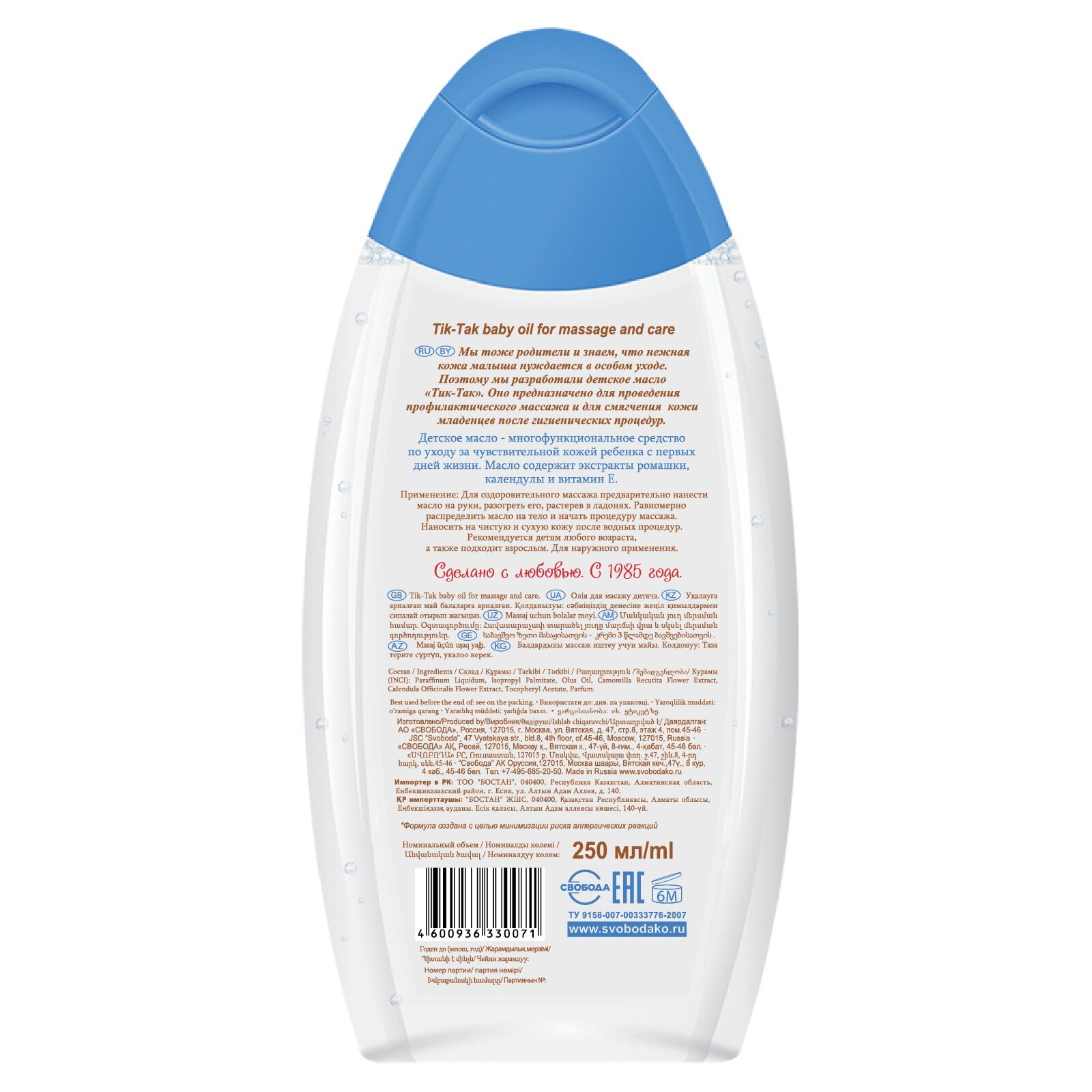 Свобода Детское масло для массажа и ухода ТИК-ТАК 0+, 250 мл