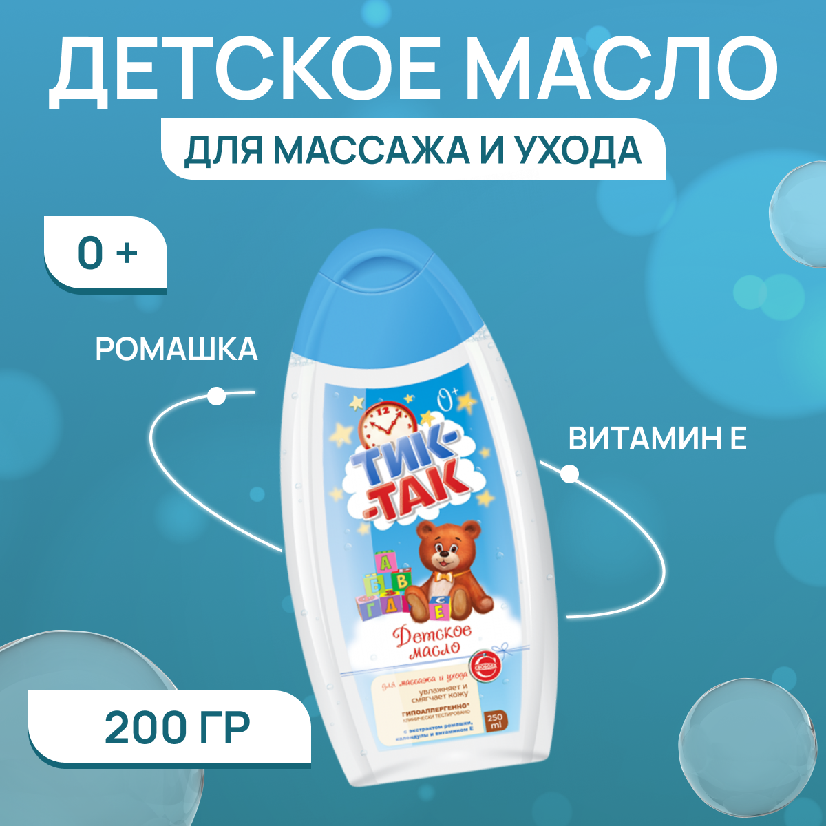 Масло детское "Тик-так", для массажа и ухода, 250 мл