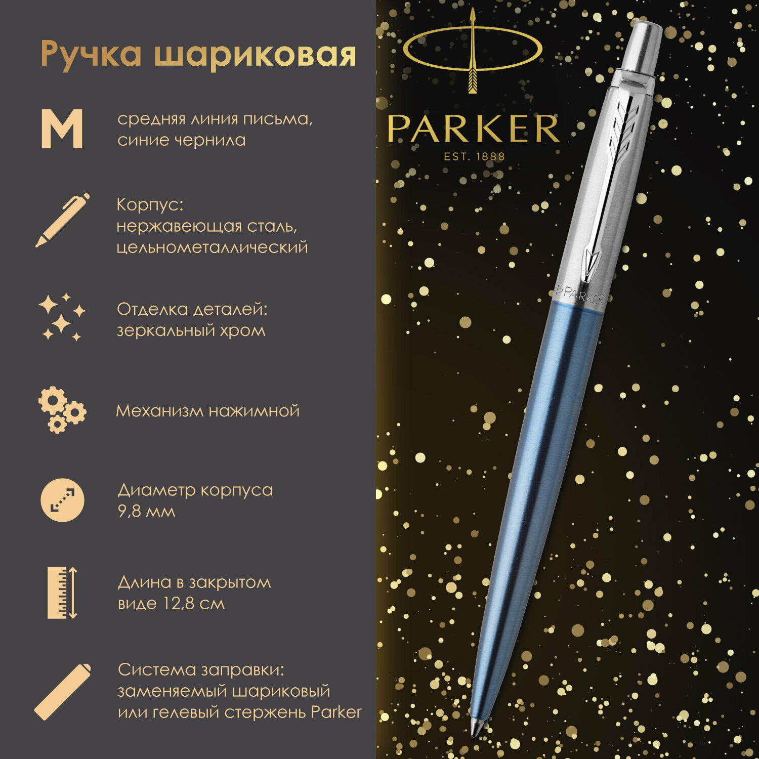 СохранитьРучка шариковая PARKER "Jotter Core Waterloo Blue CT", корпус голубой, детали хром, синяя, 1953191 интересное: