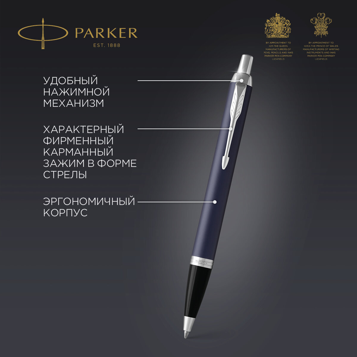 Ручка паркер шариковая подарочная Parker Im Core Matte Blue Ct, корпус темно-синий лак, хромированные детали, синяя, 142539