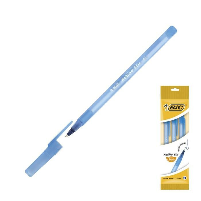 Ручки шариковые BIC "Round Stic", набор 3 шт., синие, узел 1 мм, линия письма 0.32 мм, пакет, 9021522