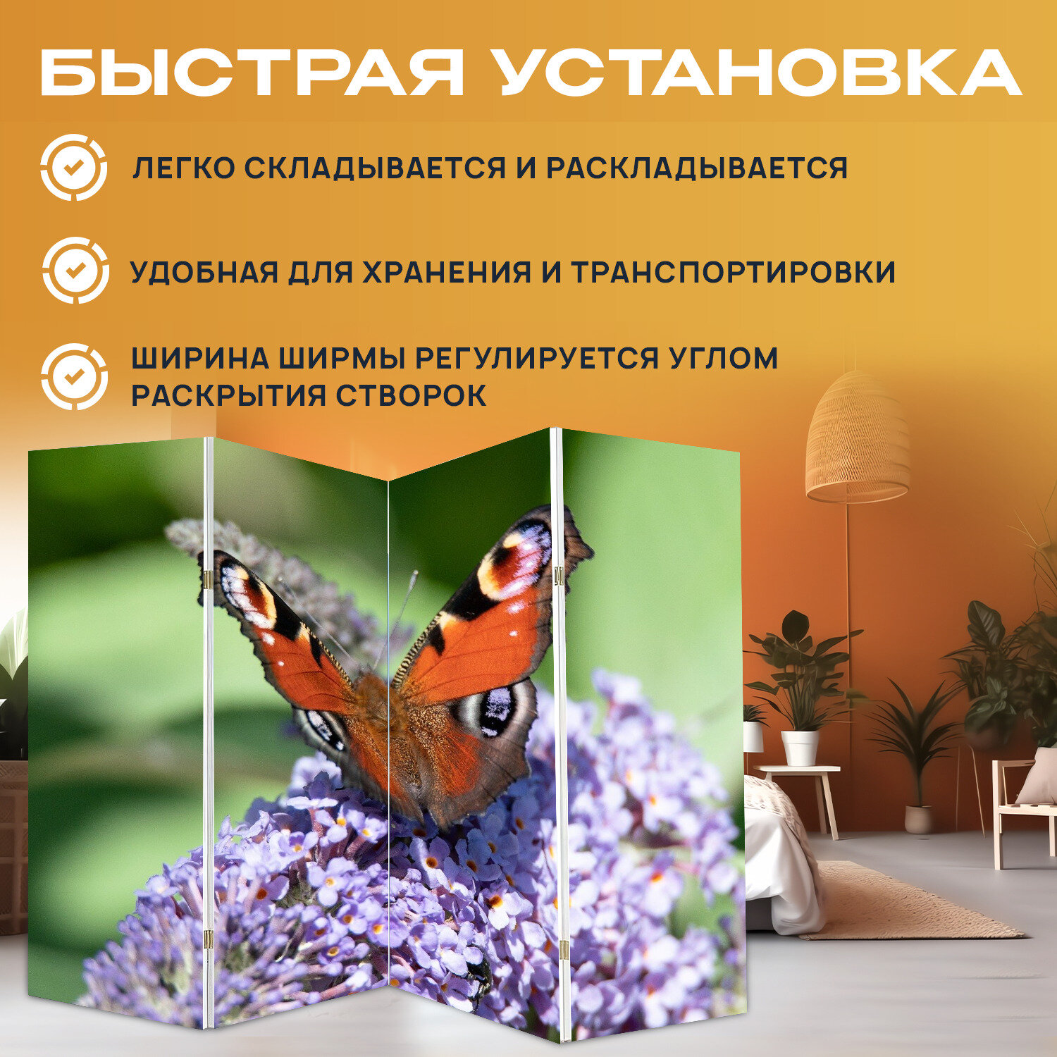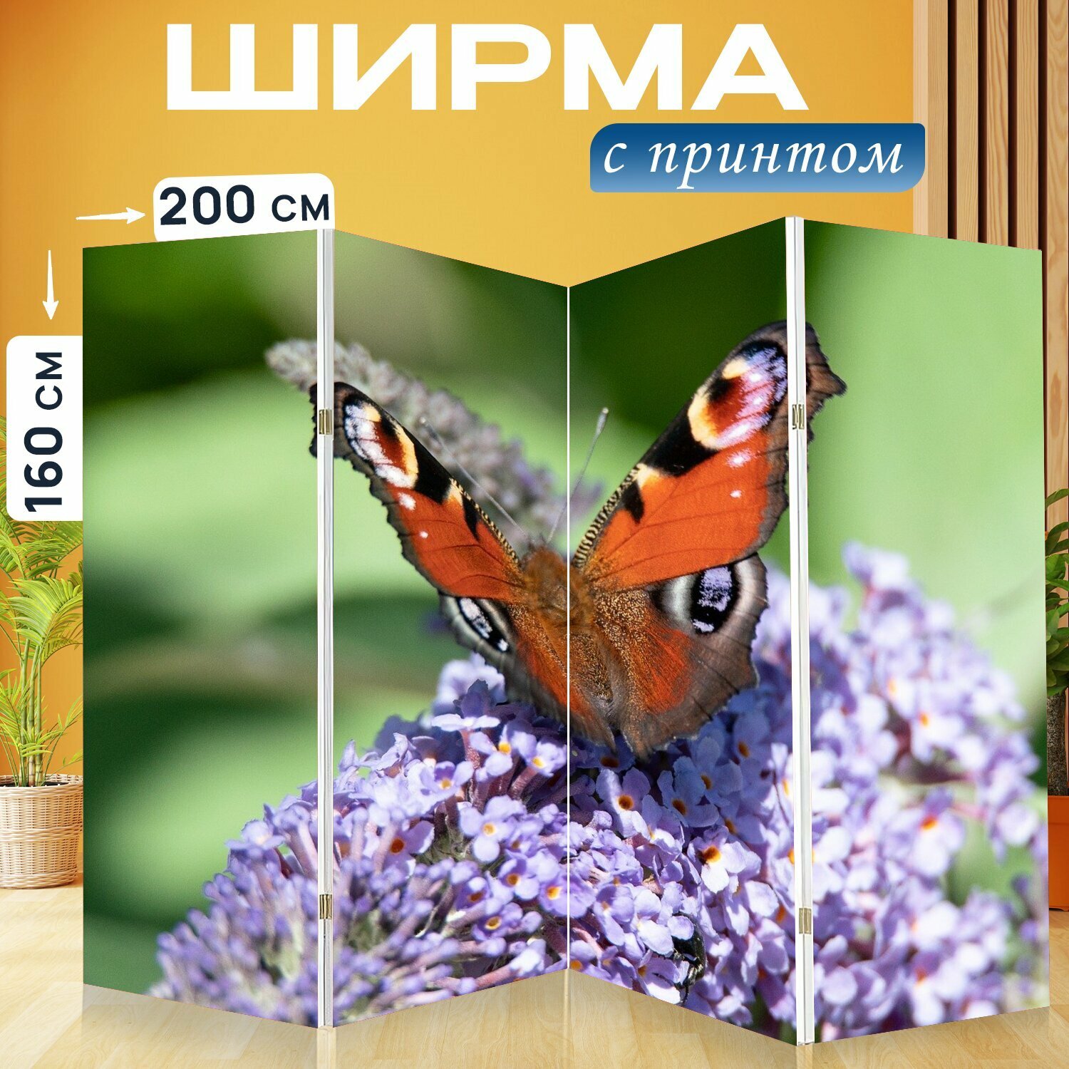 Ширма "Бабочка павлиний, бабочка, летний сиреневый" раскладная перегородка для зонирования с принтом на холсте интересное: