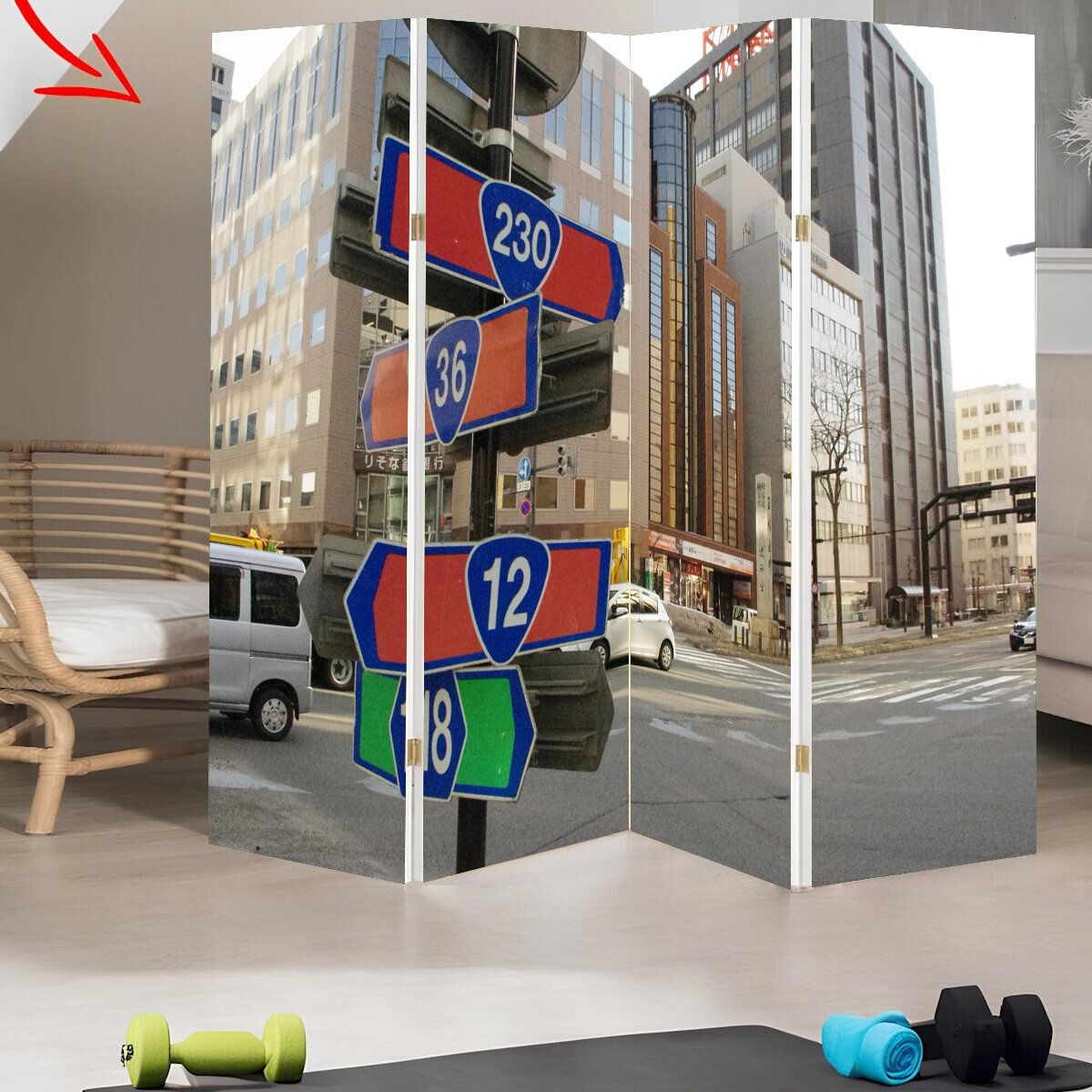 Купить Ширма "Дорожный знак, номер, дорога" раскладная перегородка для зонирования с принтом на холсте