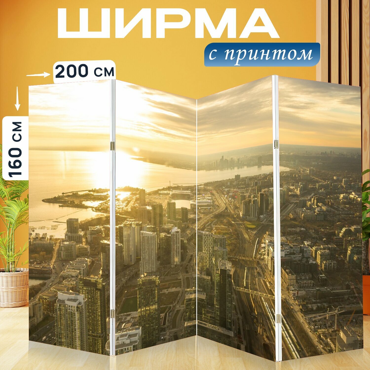Ширма "День канады, торонто, архитектуры" раскладная перегородка для зонирования с принтом на холсте интересное: