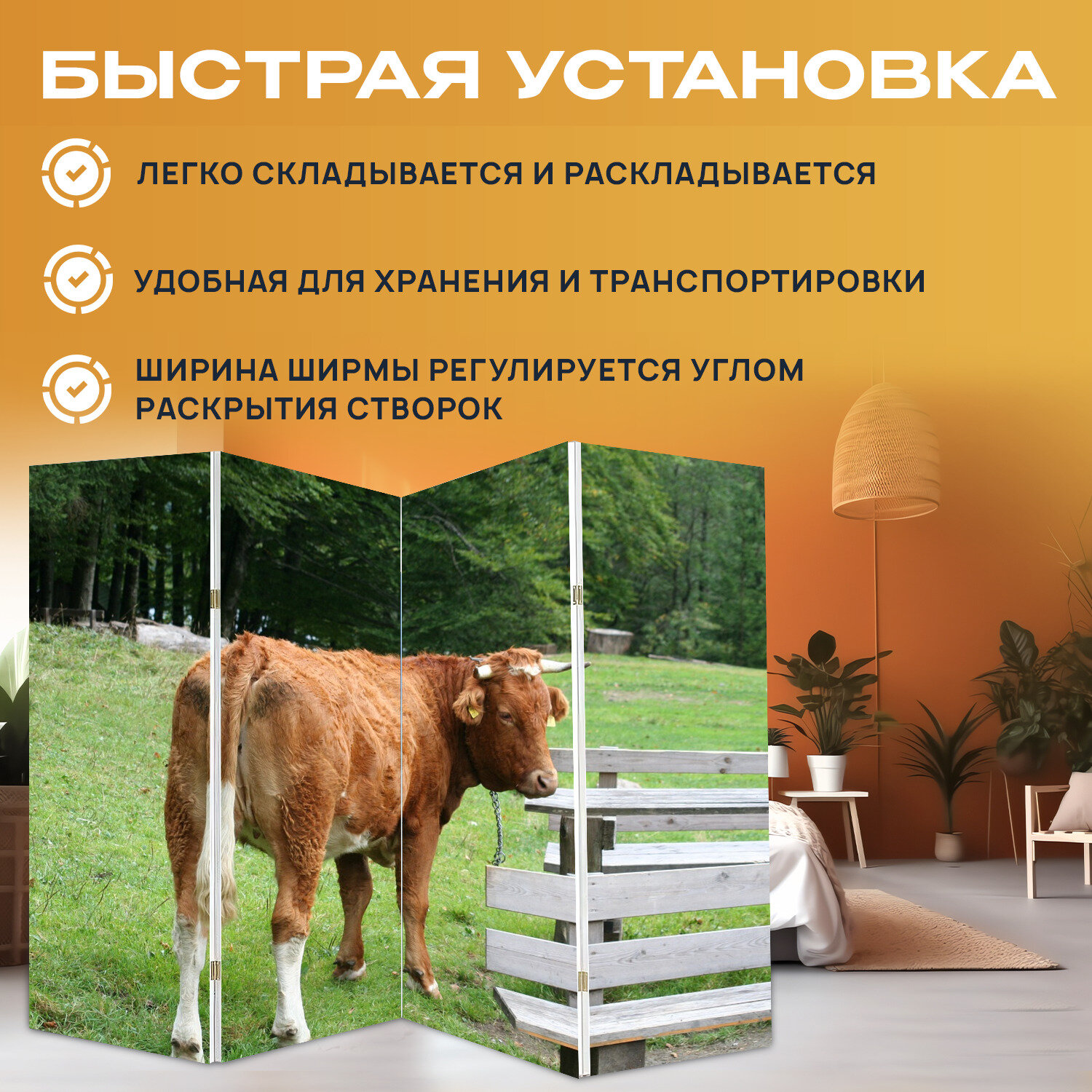 Ширма "Корова, пастбище, коричневый" раскладная перегородка для зонирования с принтом на холсте интересное: