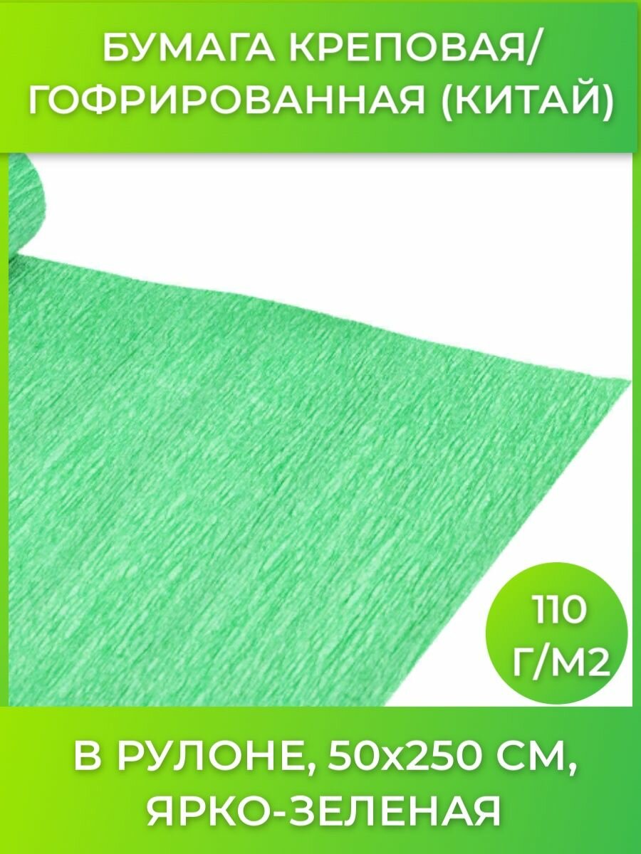 Купить Бумага гофрированная (креповая) для флористики 110 г/м2, ярко-зеленая, 50х250 см, остров сокровищ, 112537