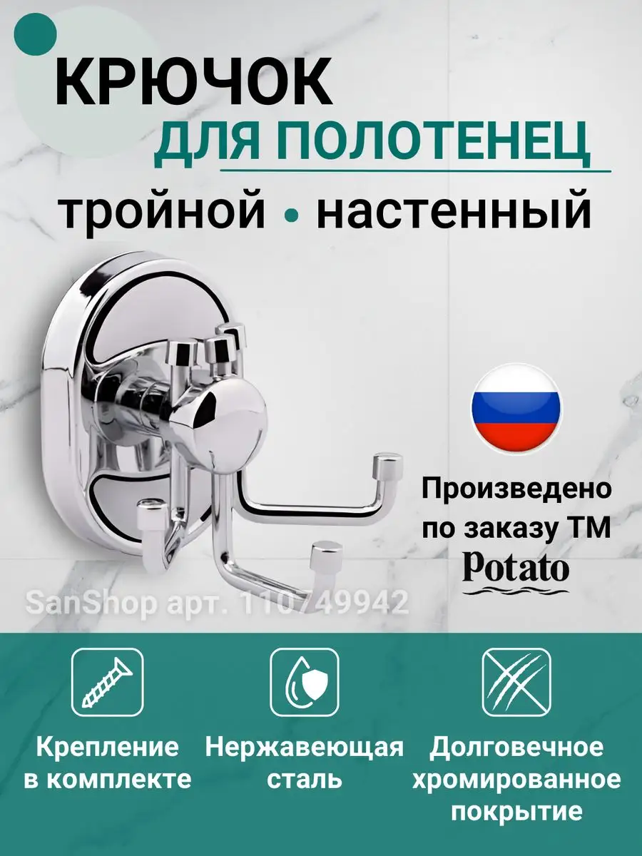 Крючок тройной, хром, Potato (Китай), арт P2905-3 интересное: