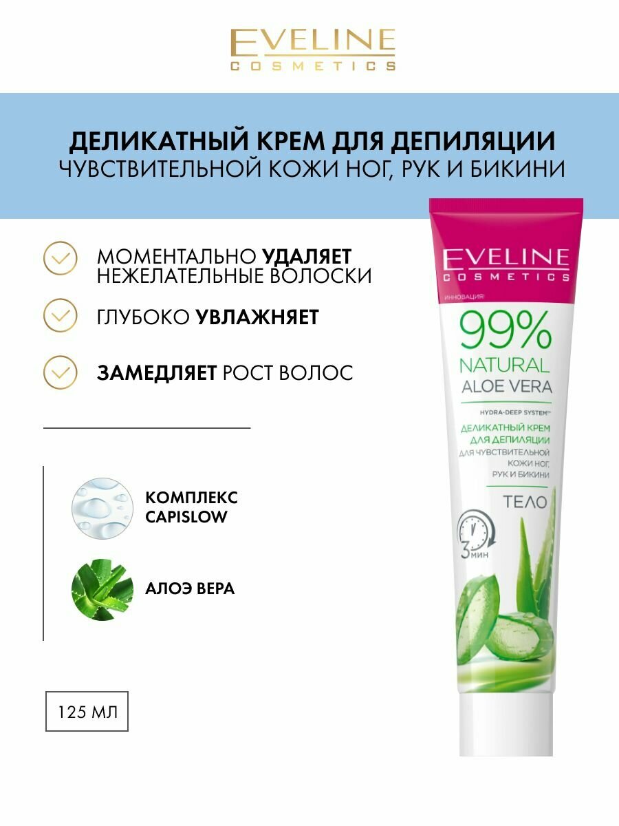 EVELINE 99% Natural Aloe Vera Деликатный крем для депиляции чувствительной кожи ног, рук и бикини 125 мл