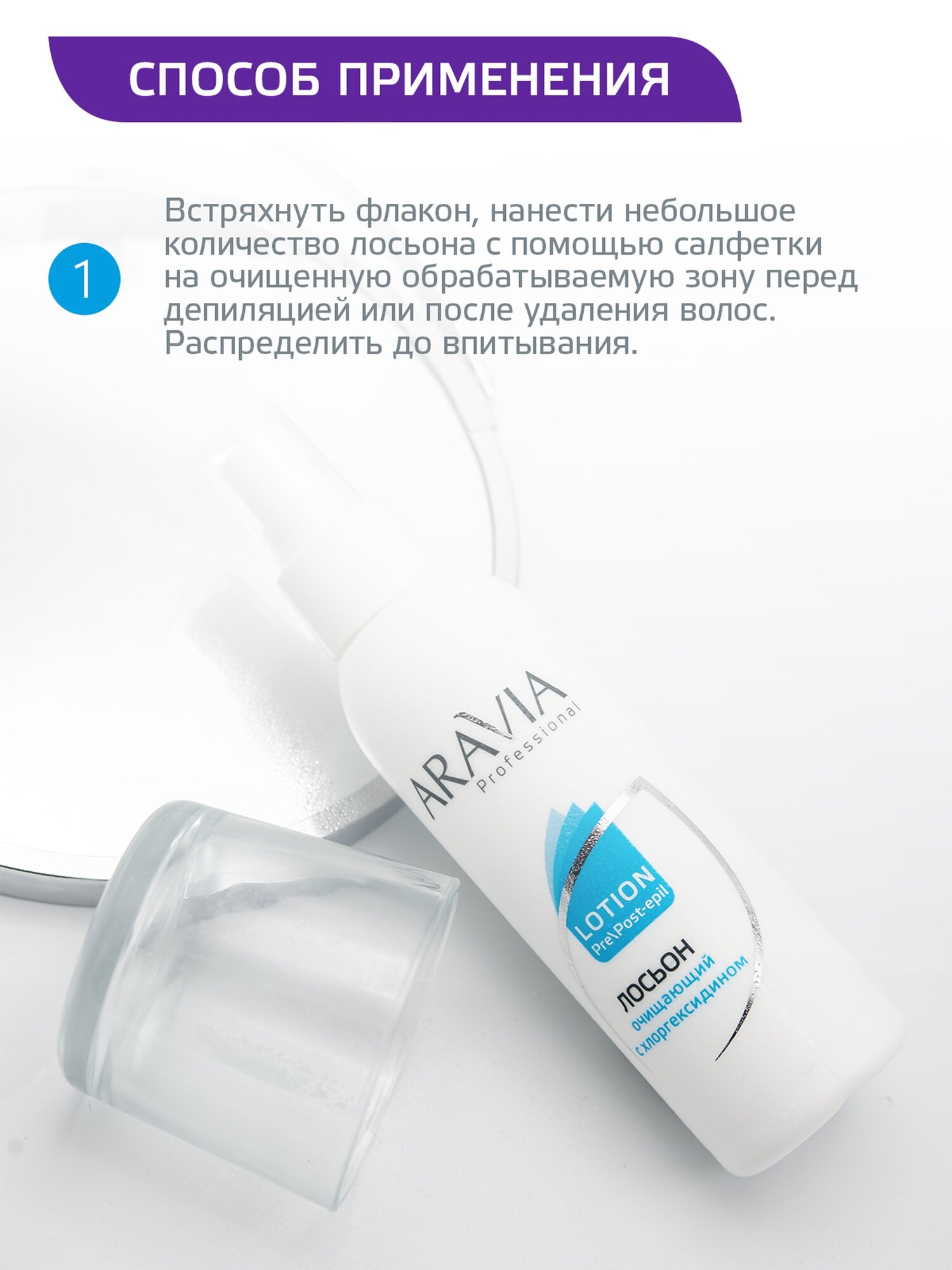 ARAVIA PROFESSIONAL Средства до и после депиляции Лосьон очищающий с хлоргексидином, 150 мл