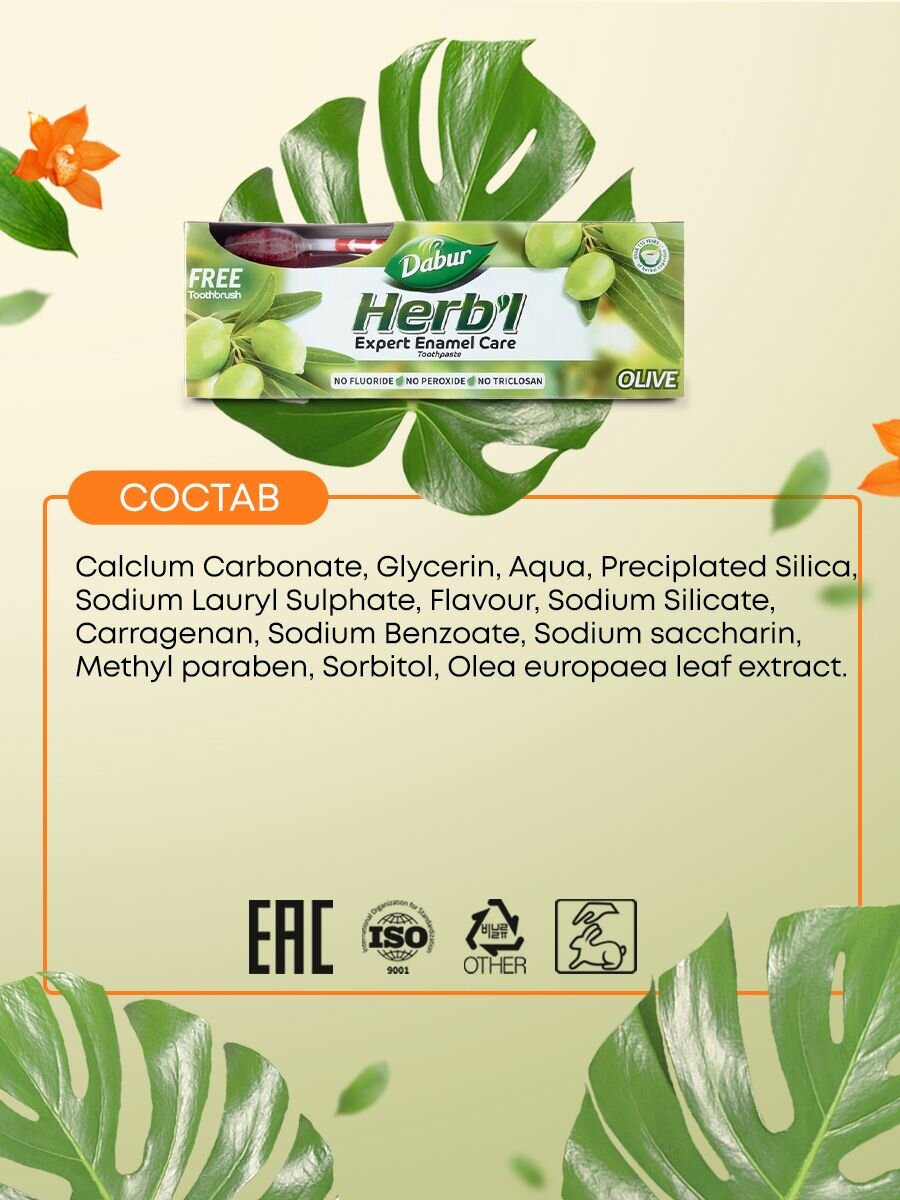 Набор Dabur Herb'l Olive зубная паста, 190 г + зубная щётка