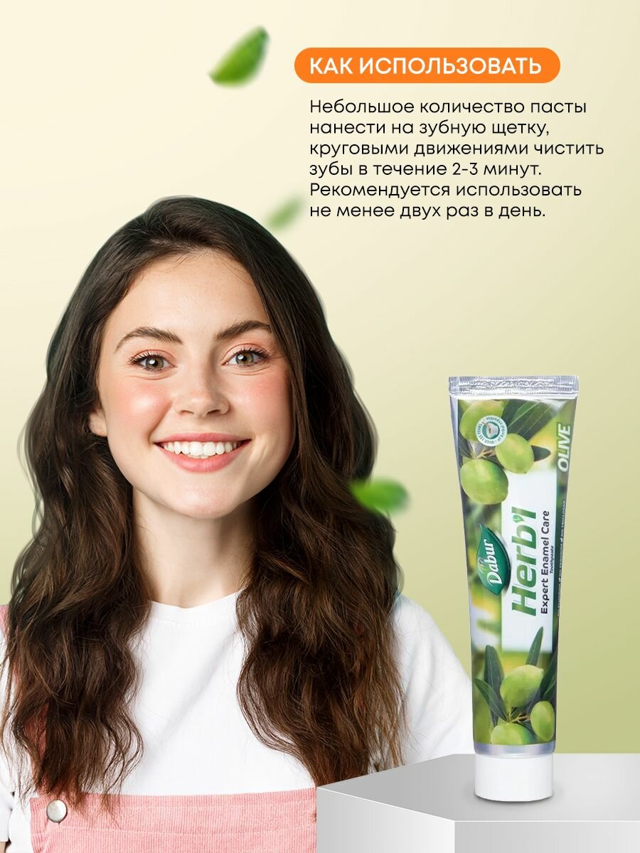 DABUR Зубная паста для защиты зубной эмали с оливой + зубная щетка (пластик)