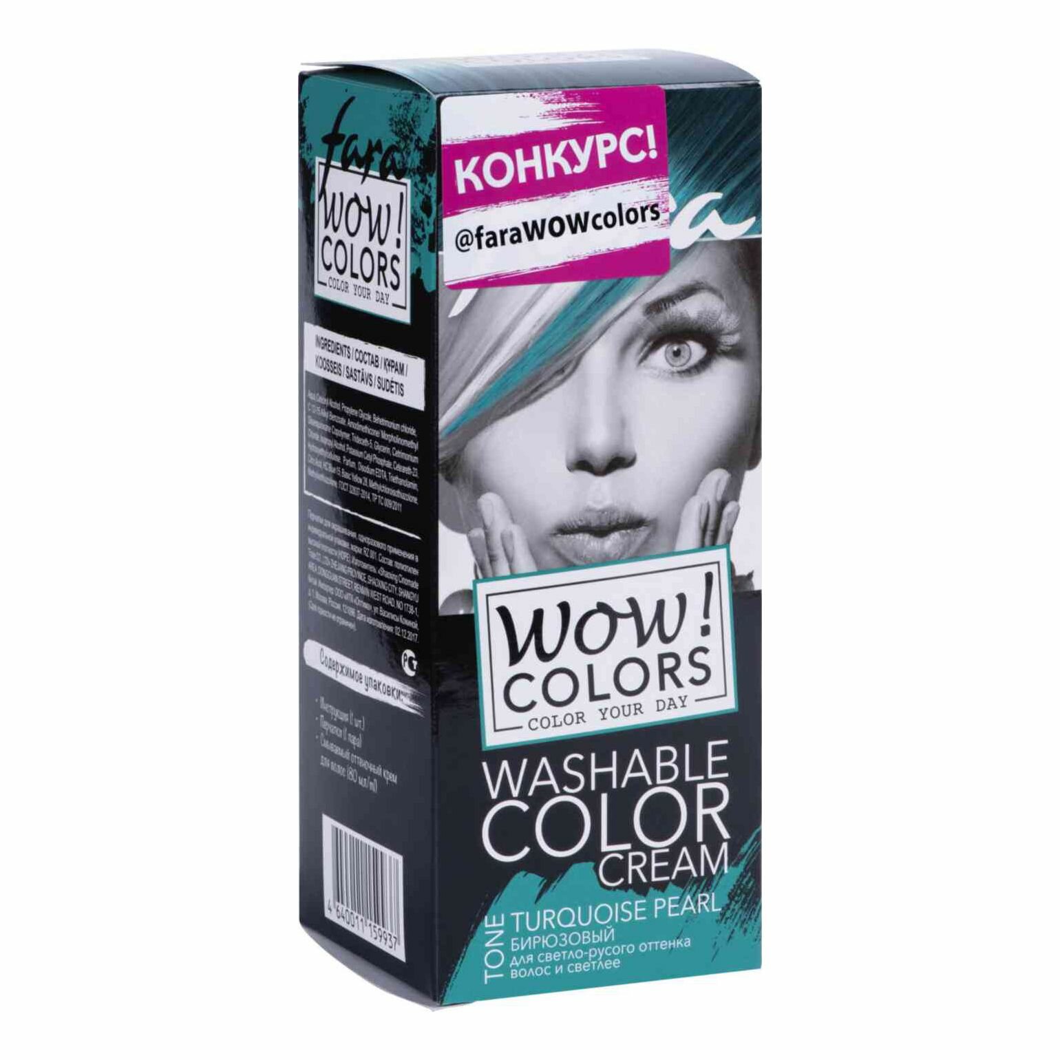 Fara Крем WOW! Colors смываемый оттеночный, turquoise pearl, бирюзовый, 80 мл
