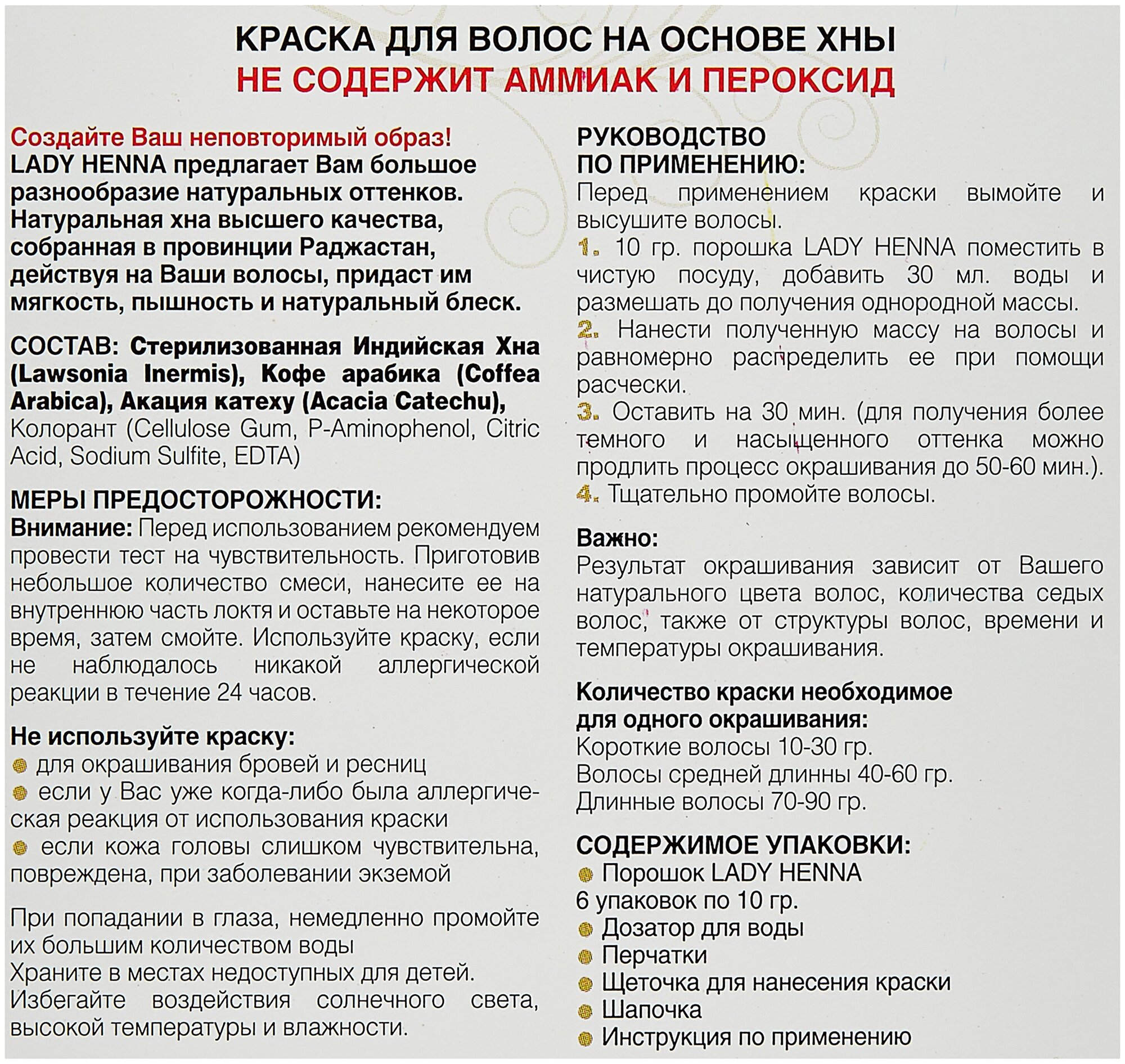 Краска для волос LADY HENNA Аюрведическая Темно-коричневый - на основе хны (№3) 6х10 г