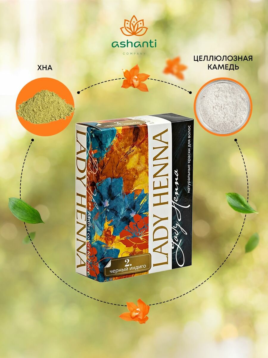 Краска для волос на основе хны "Черный индиго" (№2) LADY HENNA 60 г
