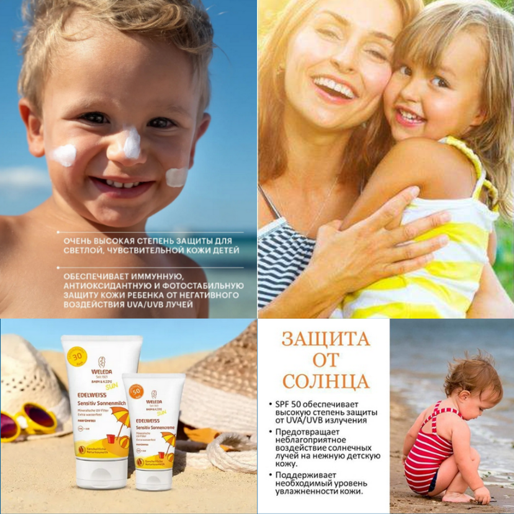 Купить WELEDA Натуральный солнцезащитный крем для младенцев и детей SPF 50