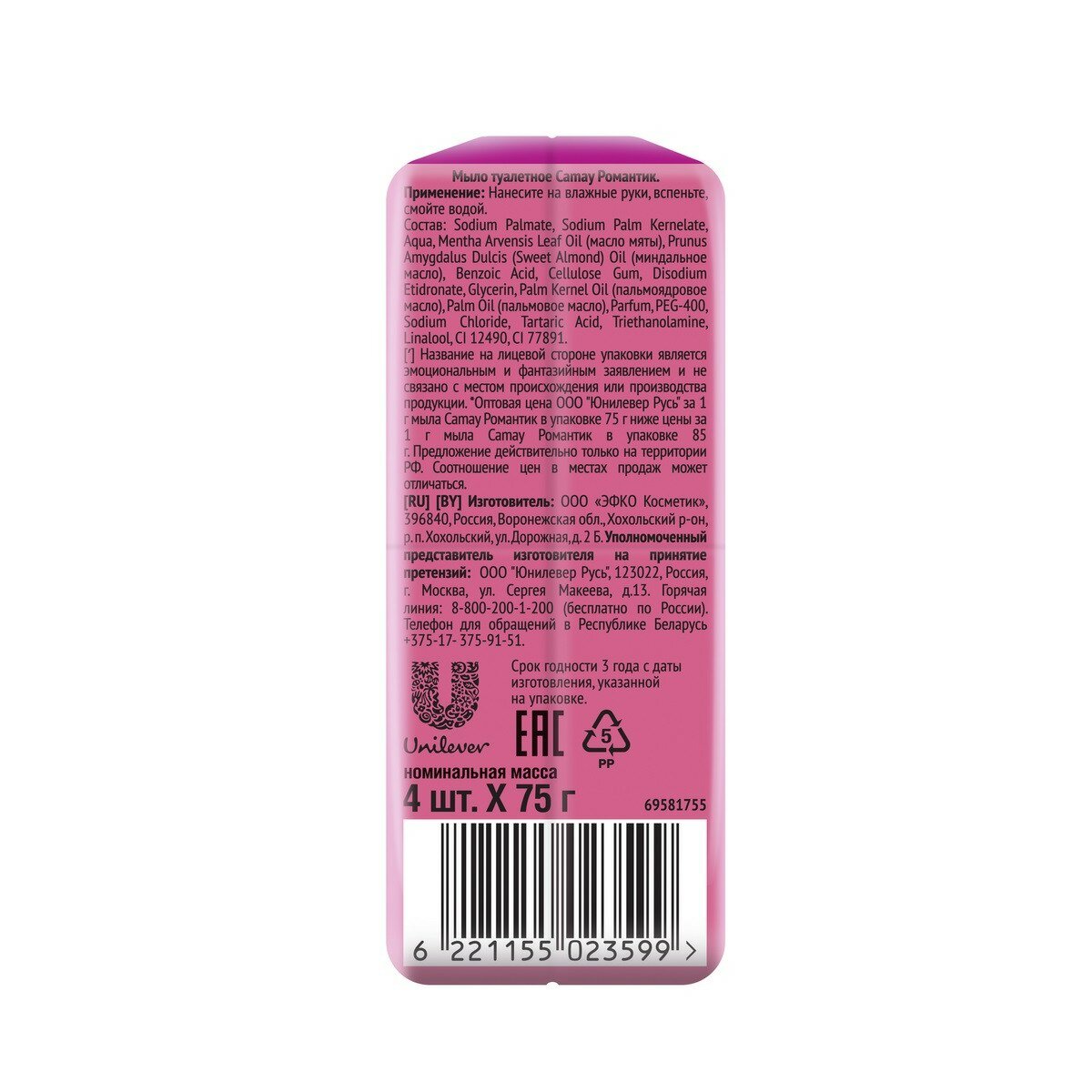 Мыло туалетное CAMAY Романтик в уп 4 шт по 75 г 729619
