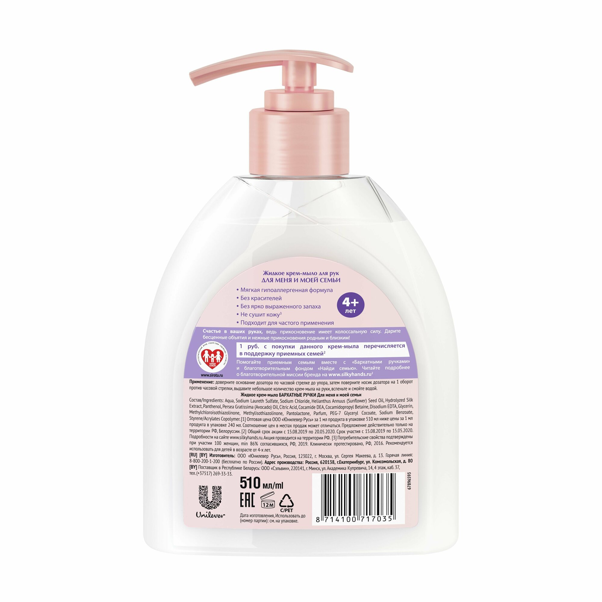 Unilever (Юнилевер) 8058 жидкое крем-мыло Бархатные Ручки Для меня и моей семьи 510 мл