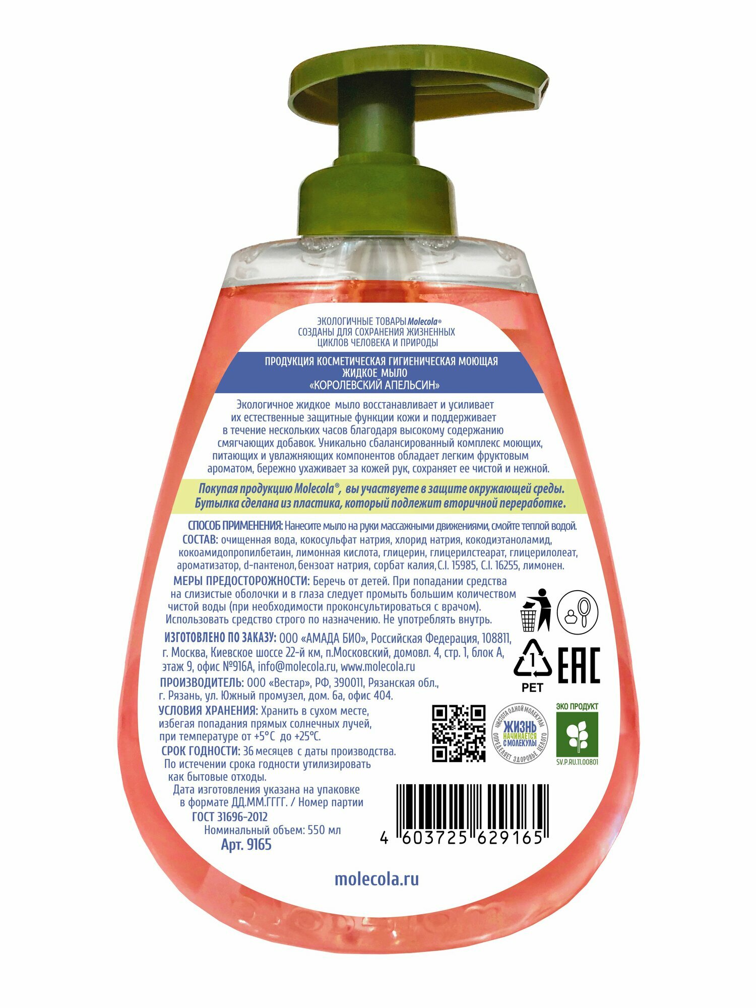MOLECOLA Экологичное жидкое мыло для рук королевский Апельсин. 500 мл
