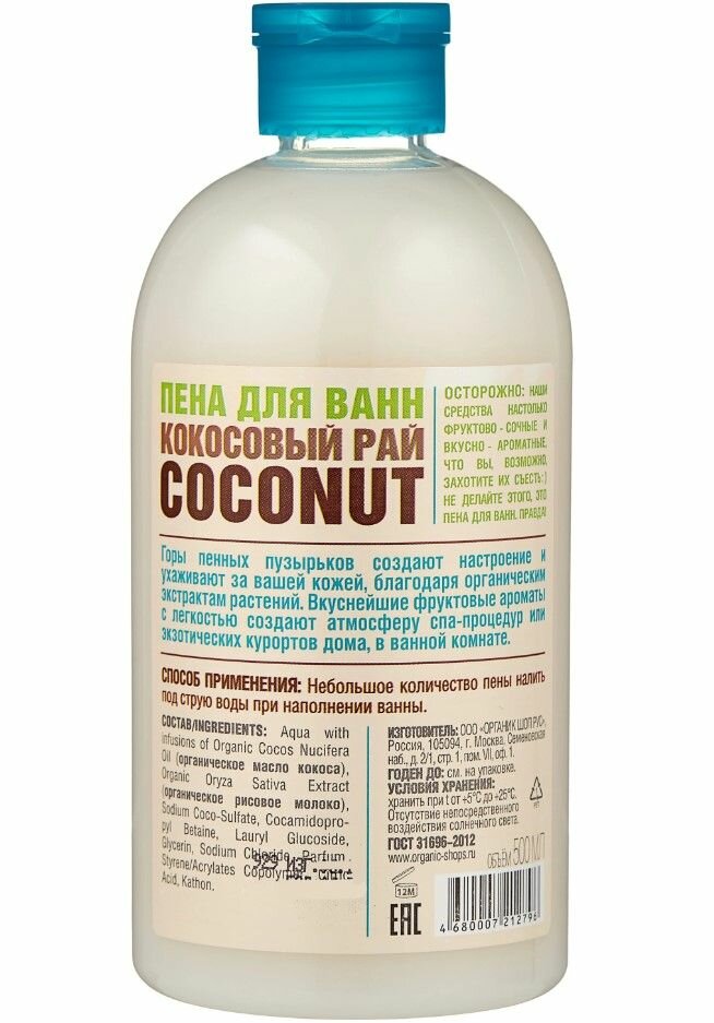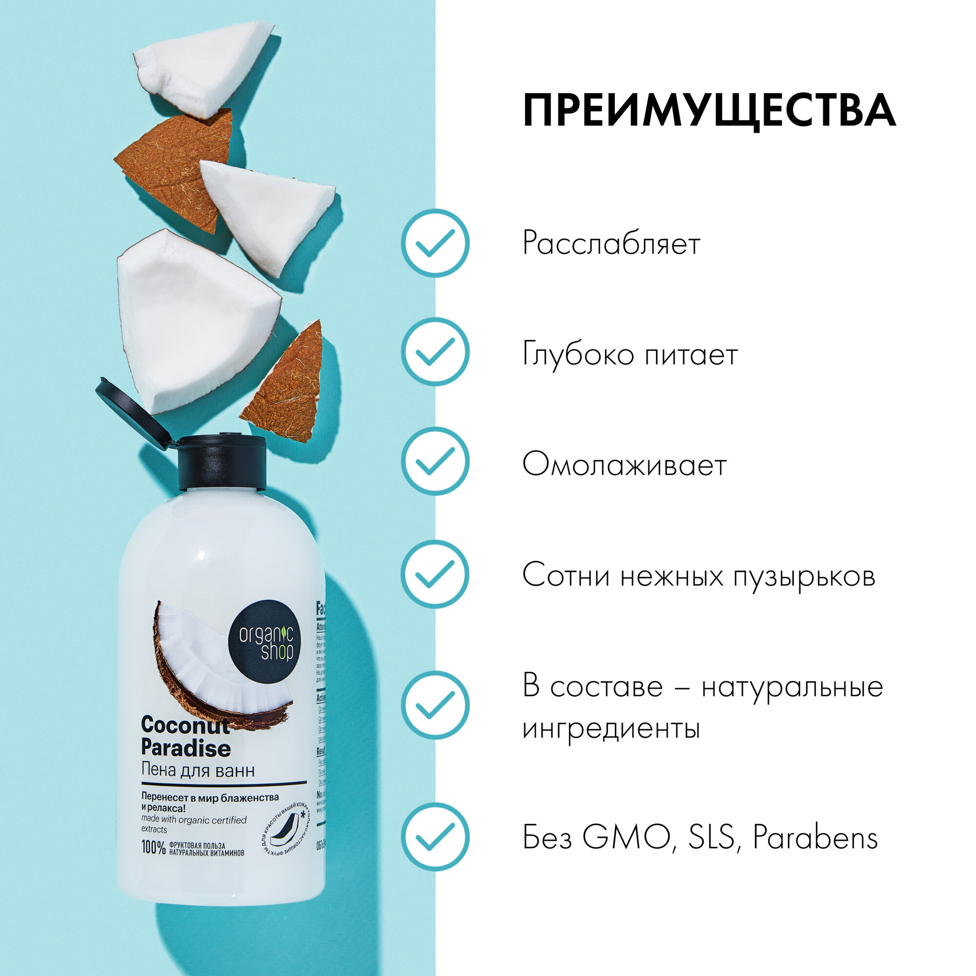 ORGANIC SHOP пена д/ванн кокосовый рай coconut, 500 мл