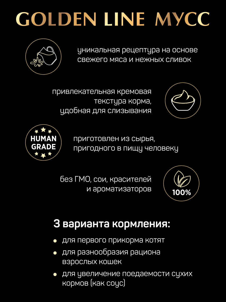 Четвероногий гурман Golden Line мусс сливочный для кошек и котят с индейкой, 24 шт по 100 г