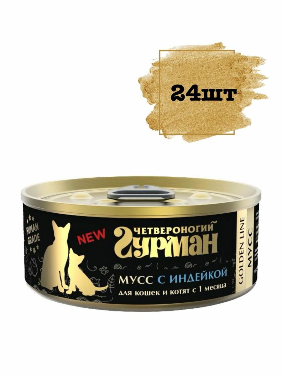 Четвероногий гурман Golden line мусс для кошек и котят с индейкой - 100 г (24 шт)
