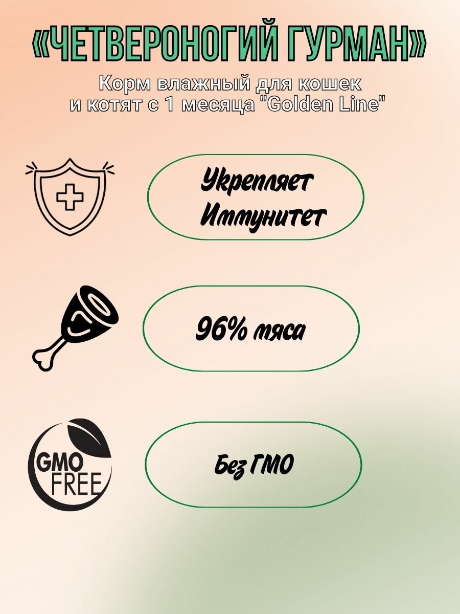 Четвероногий гурман GOLDEN LINE для кошек и котят мусс с говядиной банка 100 гр NEW 100 гр х 12 шт
