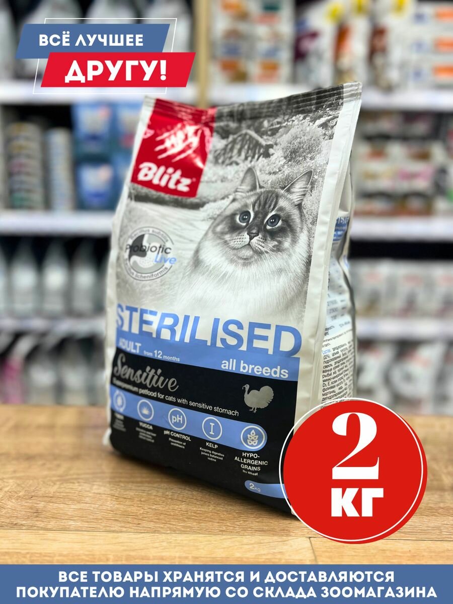 Сухой корм BLITZ SENSITIVE ADULT CAT STERILISED TURKEY для взрослых кастрированных котов и стерилизованных кошек с индейкой (2 кг)
