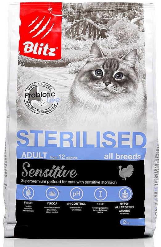 Корм Blitz Sensitive Sterilised для стерилизованных кошек, с индейкой, 2 кг