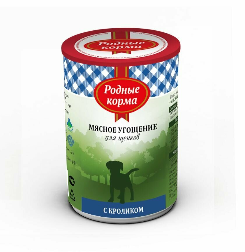 Консервы родные корма Мясное угощение для щенков с кроликом 340г 64589