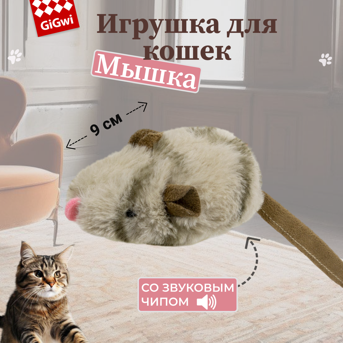 Купить GiGwi игрушка для кошек Мышка, с электронным чипом, 9 см