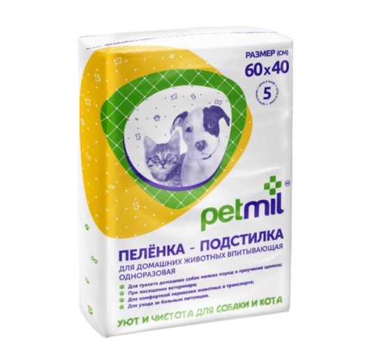 Купить Petmil Пеленка впитывающая одноразовая 60х40х5шт
