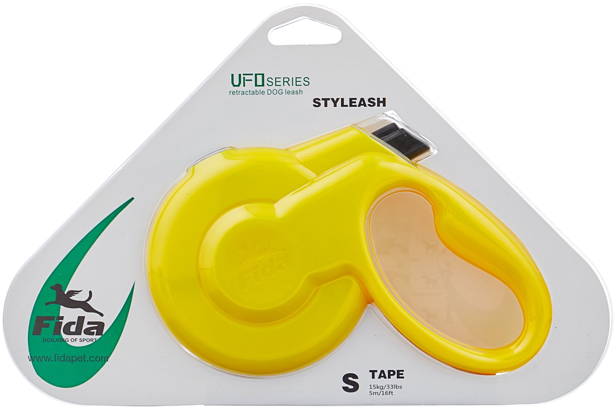 Fida Стильная рулетка Styleash для собак мелких пород до 15 кг, с выдвижной лентой 5 м, желтая