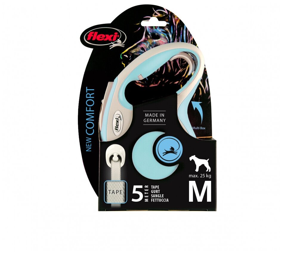 FLEXI NEW COMFORT TAPE ременной поводок рулетка для животных 5 м размер M голубой (1 шт)