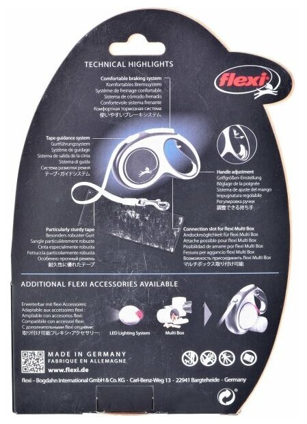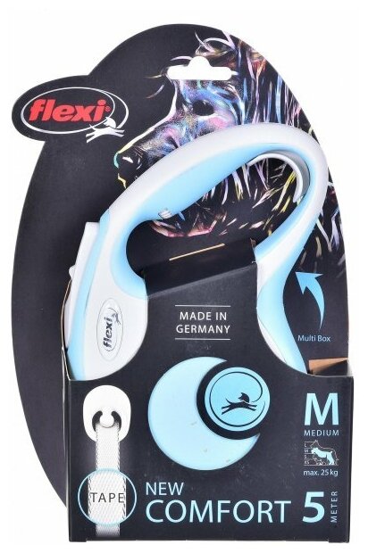 Flexi New Comfort tape M поводок-рулетка для собак, голубая 5 м, до 25 кг