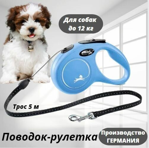 Поводок - рулетка для собак Flexi New Classic S, трос, 5 м, до 12кг, синяя
