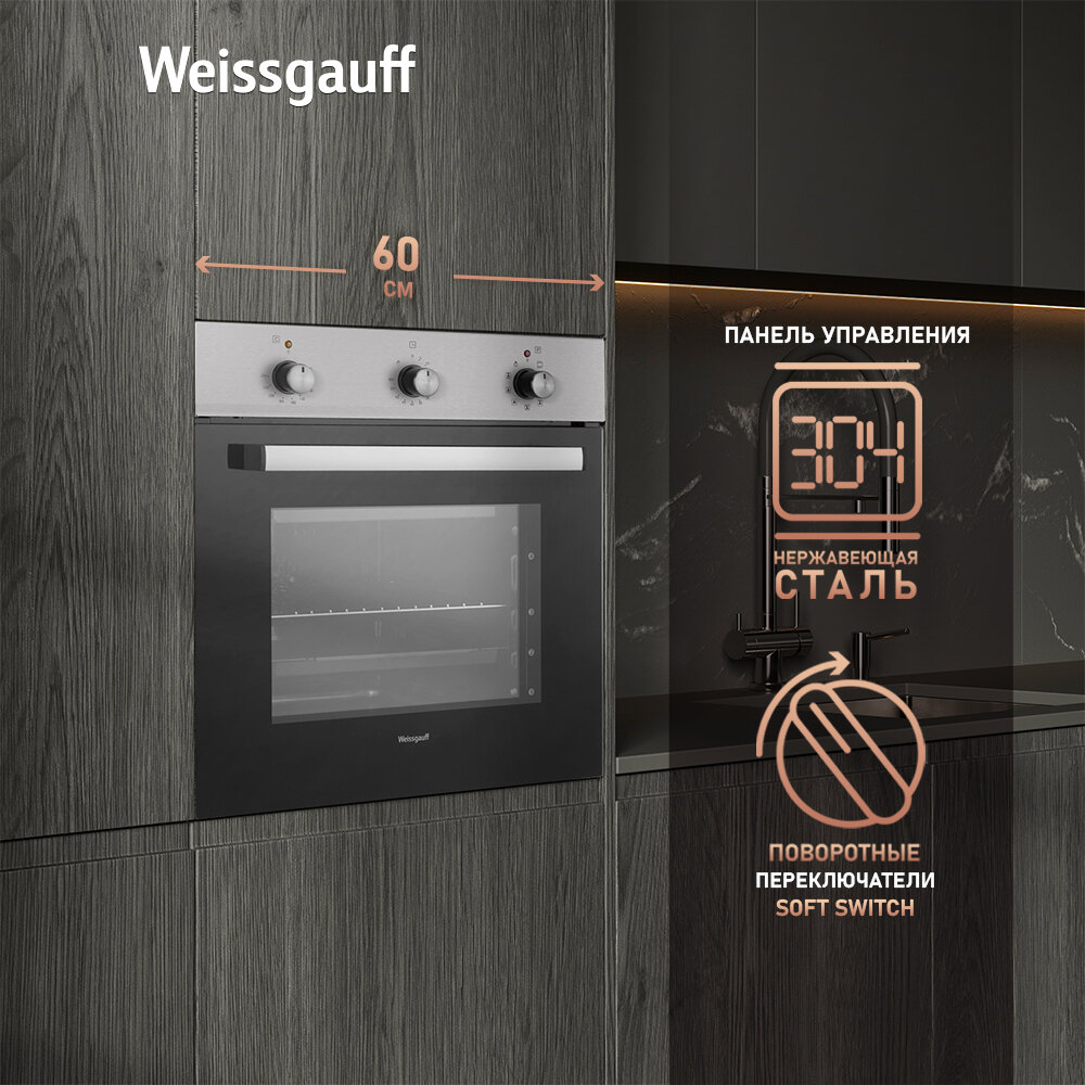 Духовой шкаф WEISSGAUFF EOV 19 MX, нержавеющая сталь/черный