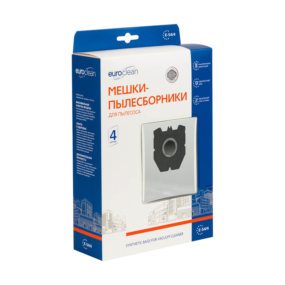 Мешок-пылесборник E-54/4 Euroclean синтетические для пылесоса, 4 шт интересное: