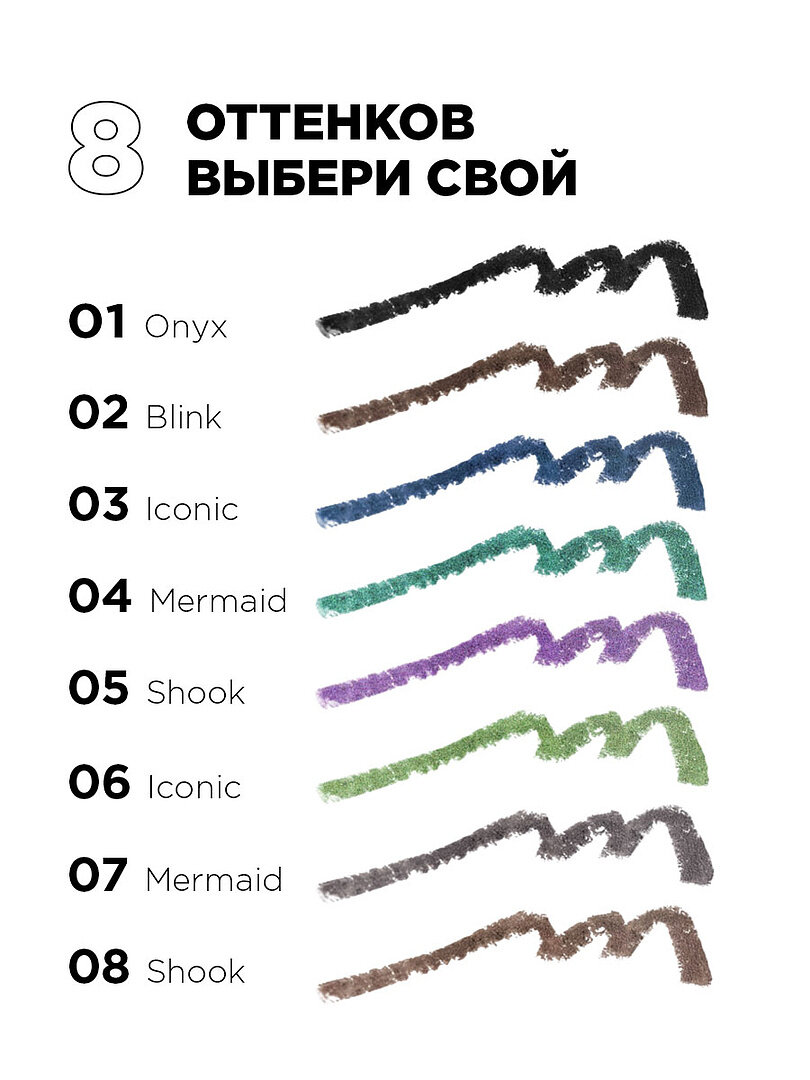 Плохо растушевывается, вызывает аллергию (глаза краснеют через минуту, если на слизистую нанести), стрелки нарисовать не получится - карандаш скатывается и "залипает". Наношу на нижнее веко тонко, попробуйте интенсивнее наносить и слипнутся все ресницы. Единственный плюс - эта тонкая подводка нижнего века держится весь рабочий день. Упаковка приятная На это всё. Товар не стоит своих денег, как и любой продукт сделанный в РФ |