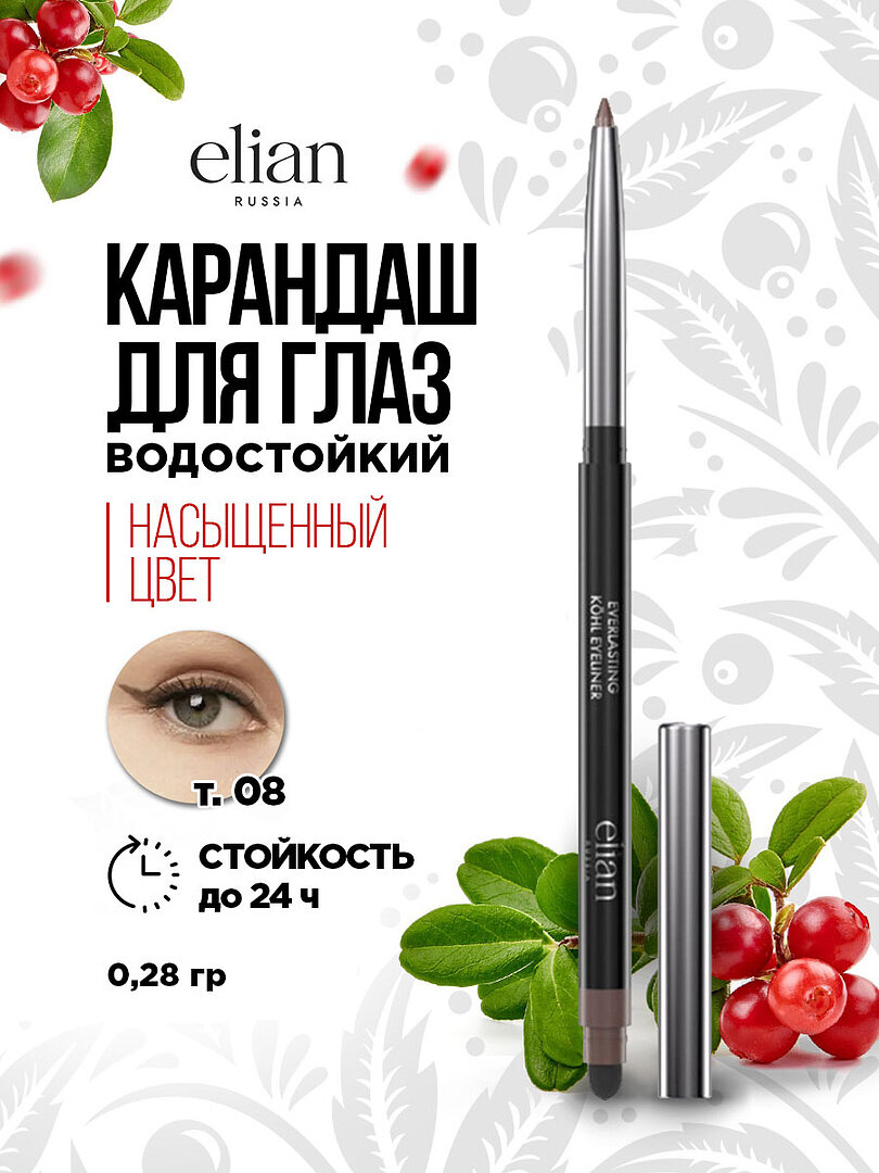 ELIAN RUSSIA Карандаш для глаз Everlasting Kohl Waterproof Eyeliner автоматический, 0,28 г, 08 Soul