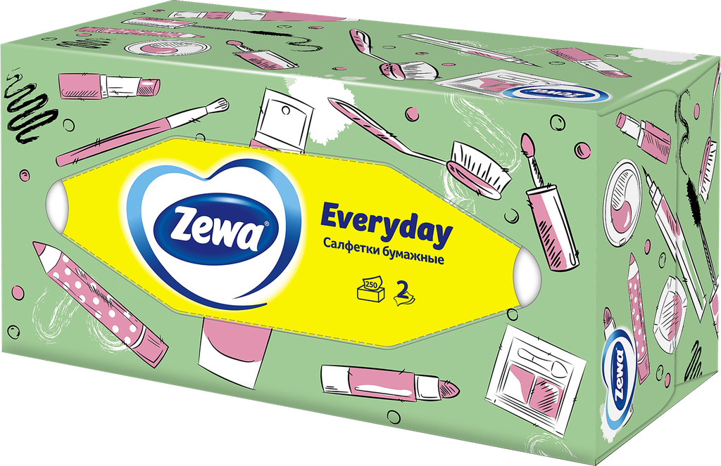 Zewa Салфетки бумажные Everyday косметические 2 слоя, 250 шт /