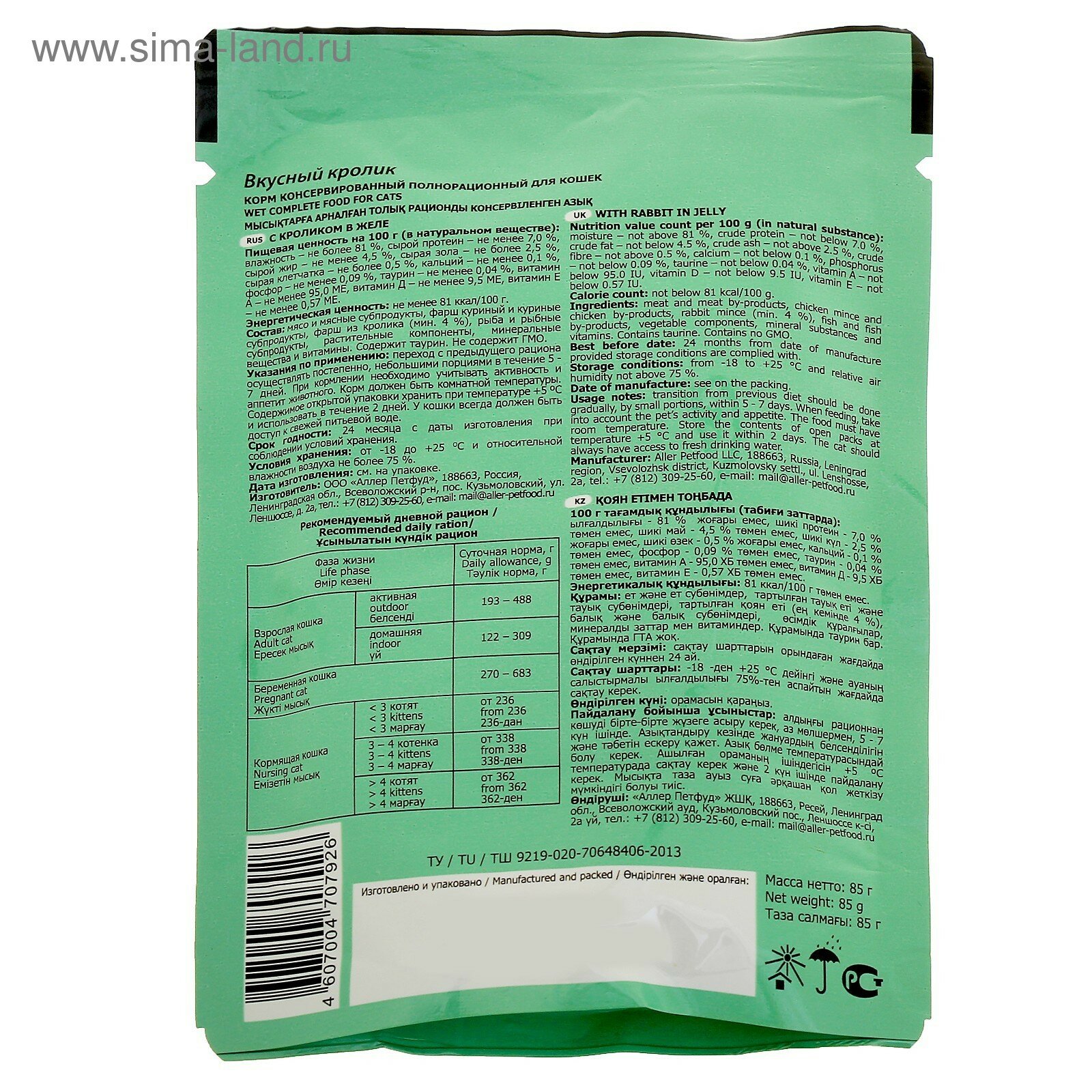 СохранитьВлажный корм для кошек, кролик в желе, пауч, 85 г интересное: