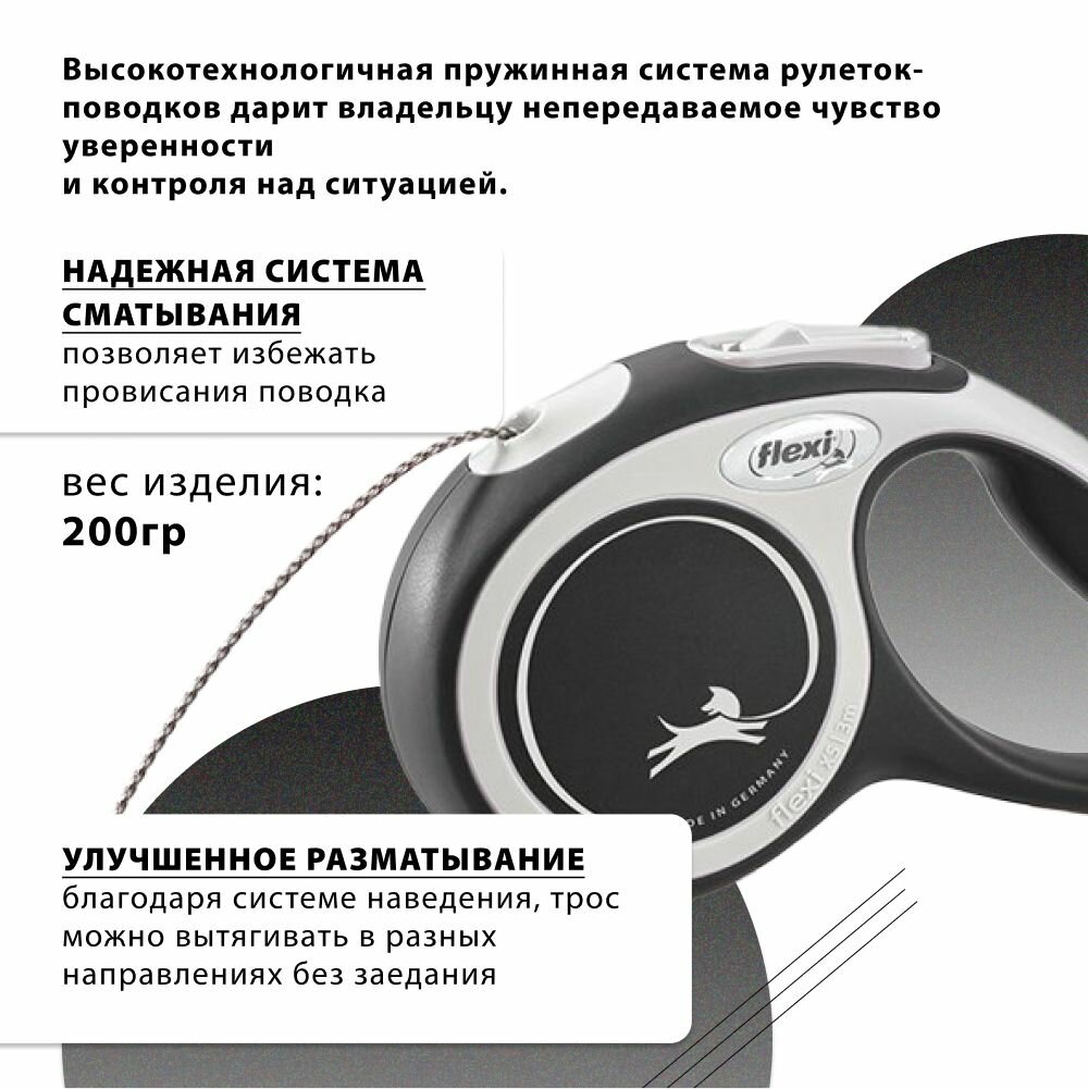 Рулетка FLEXI NEW COMFORT S трос 5м до 12кг черный
