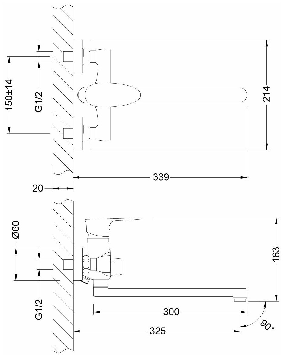 | Длина излива | 325 мм |