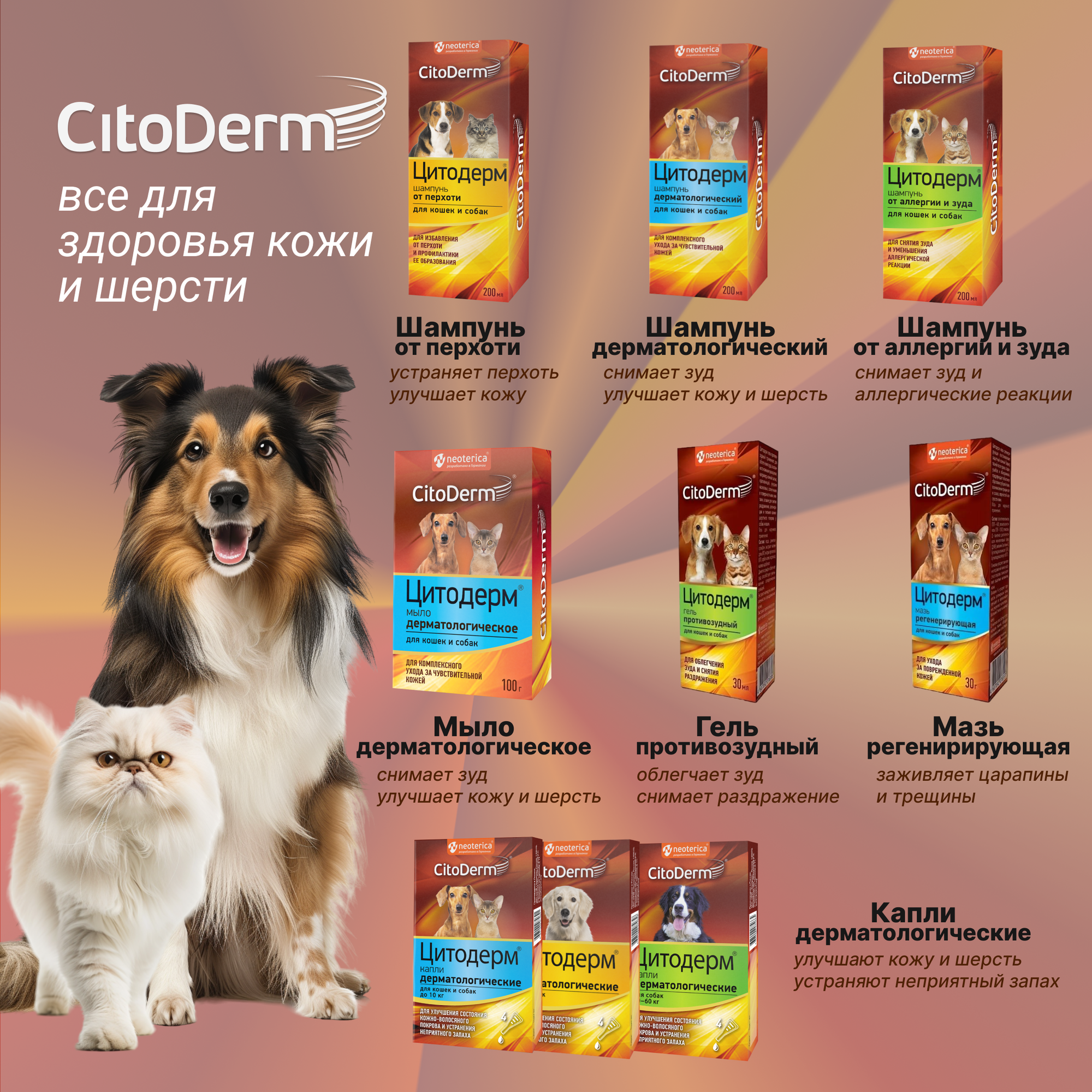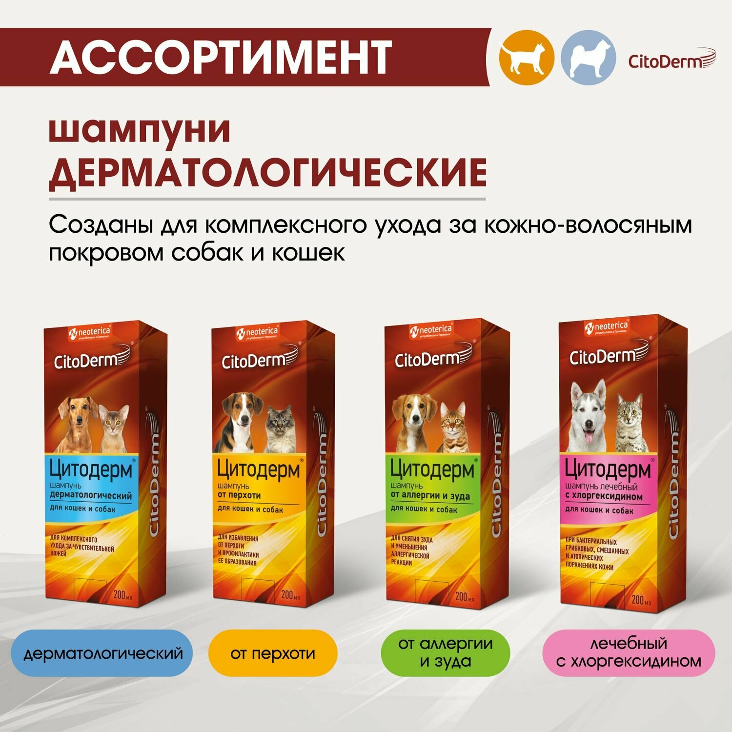 Шампунь от перхоти "Citoderm", для кошек и собак, 200 мл