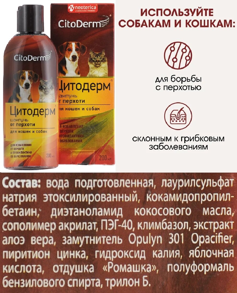 Шампунь цитодерм от перхоти для кошек и собак 200 мл