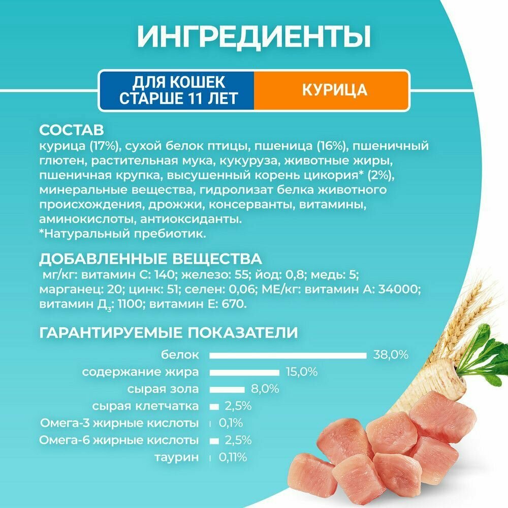 Сухой корм Purina ONE для кошек старше 11 лет с курицей и цельными злаками, Пакет, 750 г,Для взрослых кошек старше 11 лет