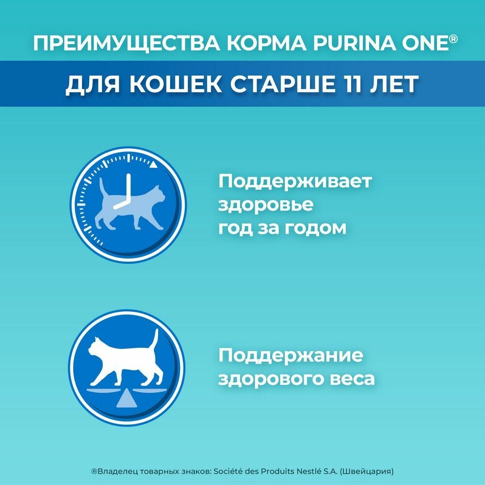 Сухой корм Purina ONE для кошек старше 11 лет, с высоким содержанием курицы и цельными злаками 750 г х 2 шт