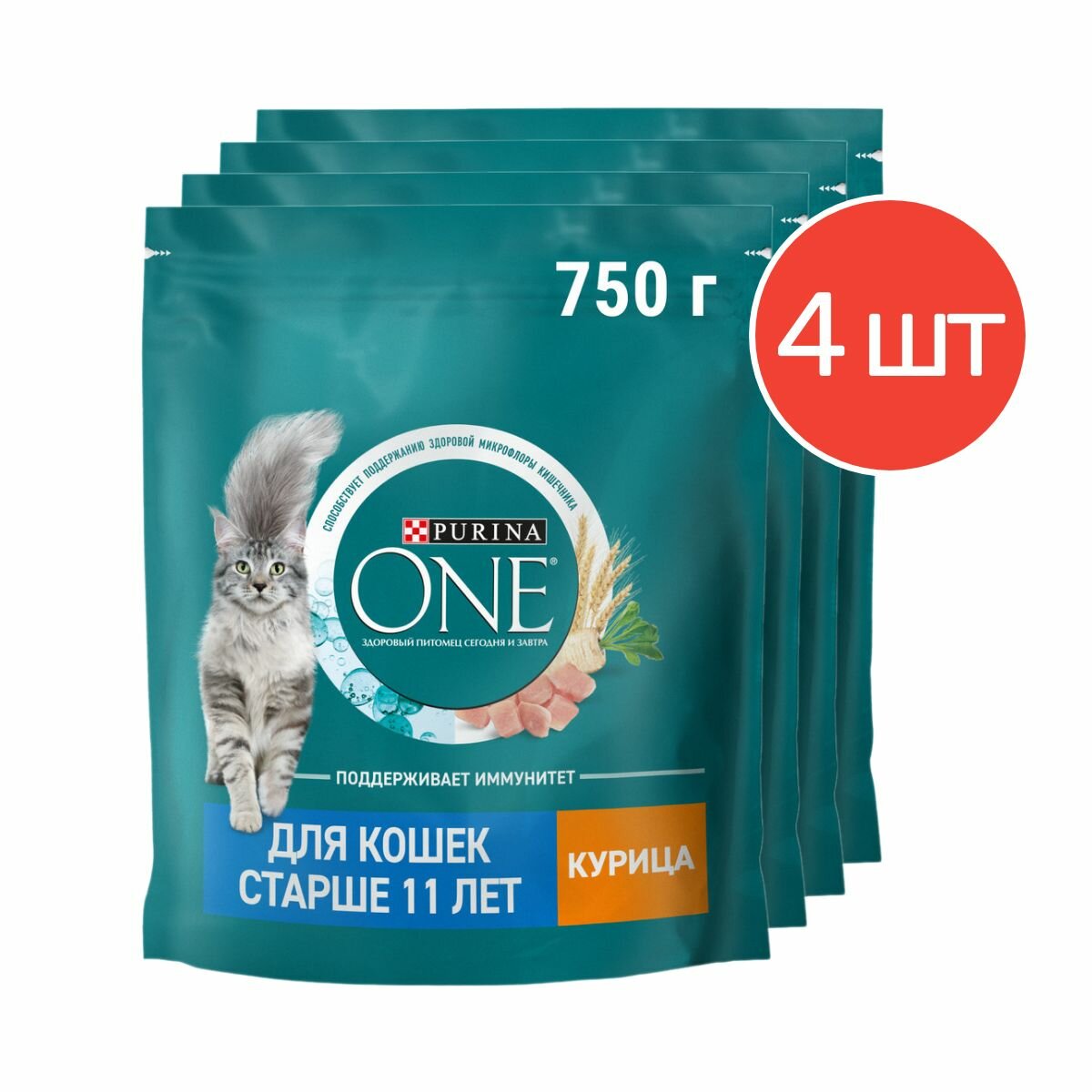Сухой корм Purina ONE для кошек старше 11 лет, курица и цельные злаки, 750 г, 4 шт