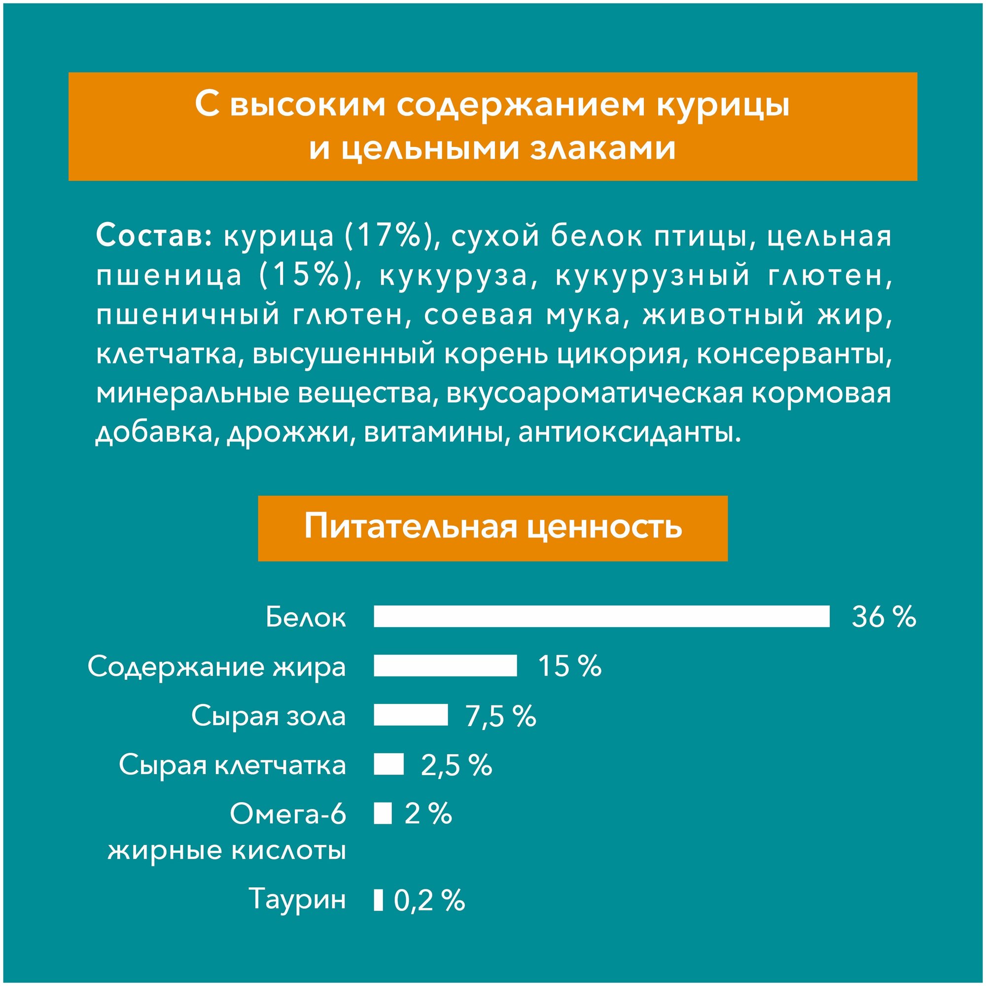 Purina 750 г сухой корм для взрослых кошек, с высоким содержанием курицы 3 шт